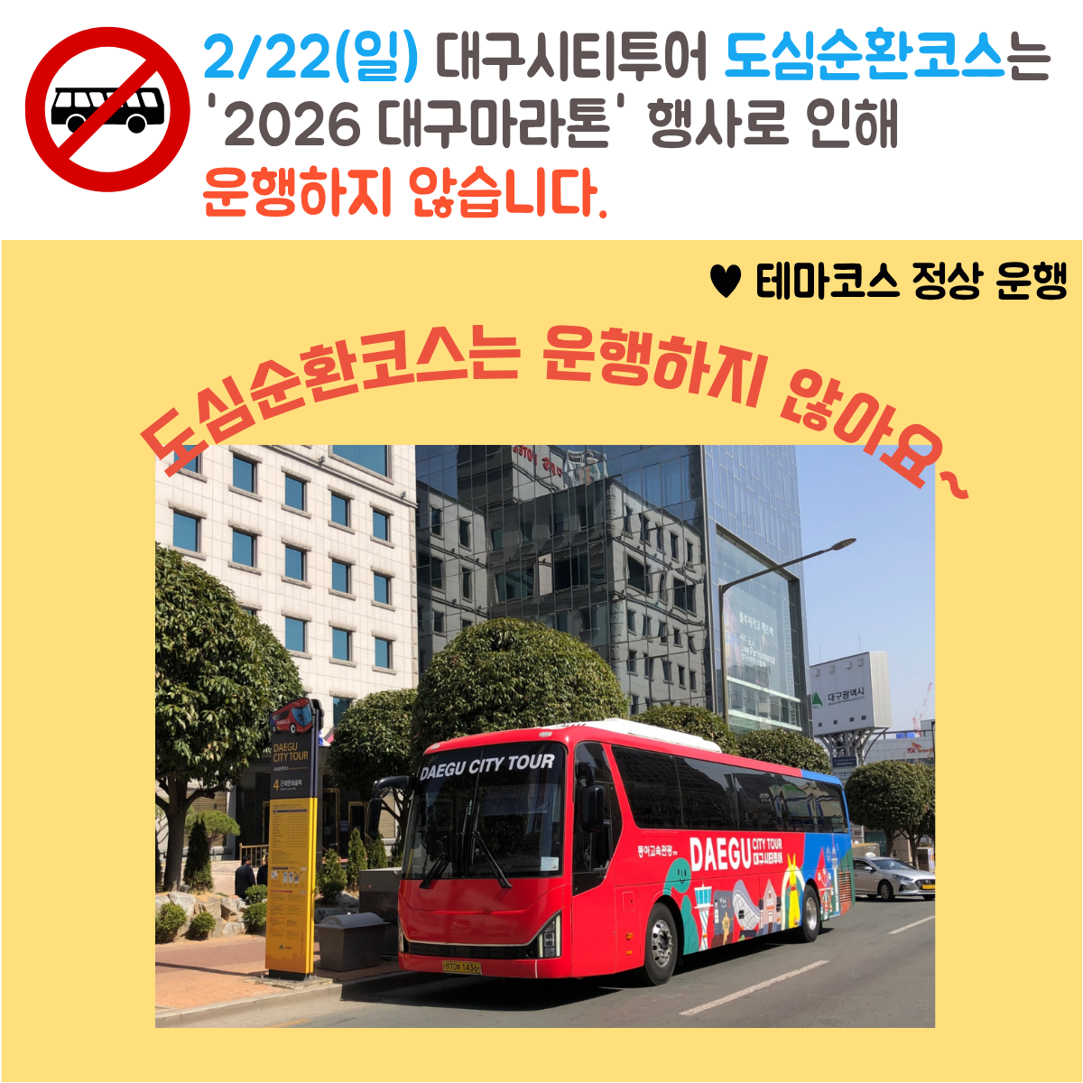 [공지] 2/22(일) 대구시티투어 도심순환 노선 미운행