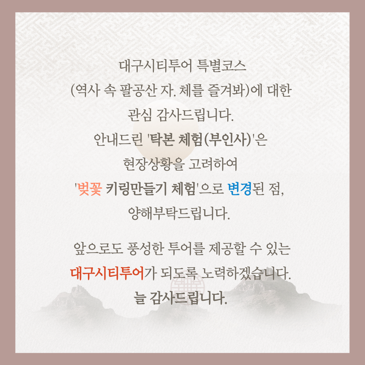 [공지] 특별코스(역사 속 팔공산 자.체를 즐겨봐) 체험 관련 공지